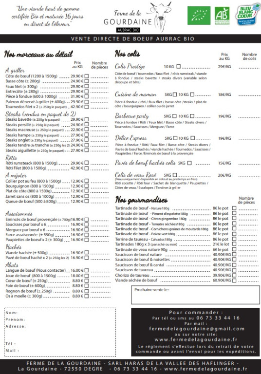 Pour passer commande en toute simplicité, vous pouvez télécharger ce bon de commande. Vous y trouverez la liste complète des articles proposés ainsi que les tarifs.