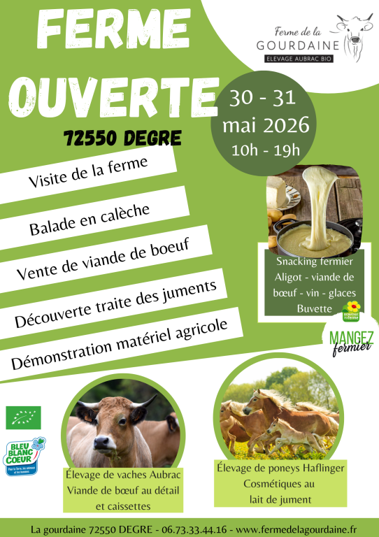 PORTES OUVERTES A LA FERME AVEC ANIMATIONS : les 30 & 31 mai 2026 de 10h00 à 19h00